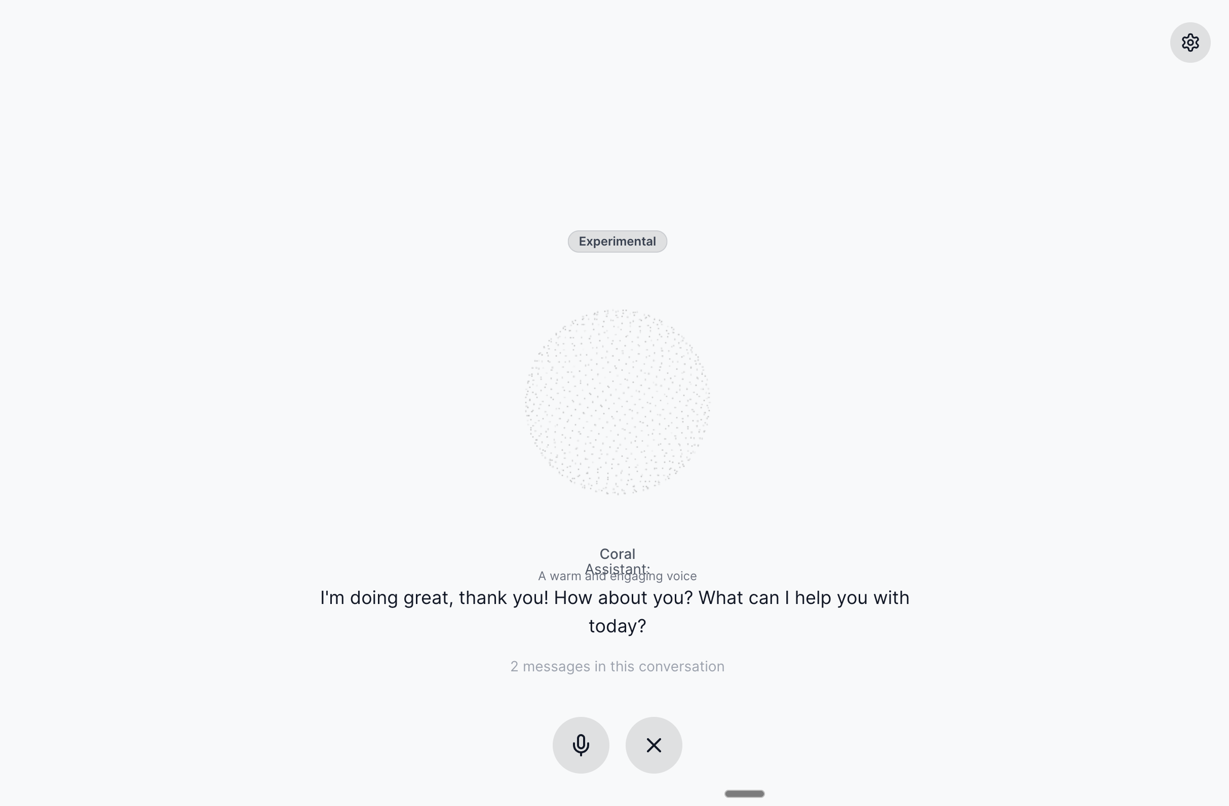 Once you enter realtime mode, you're greeted by Artifact's beautifully designed voice interface that puts conversation at the center. The interface features: