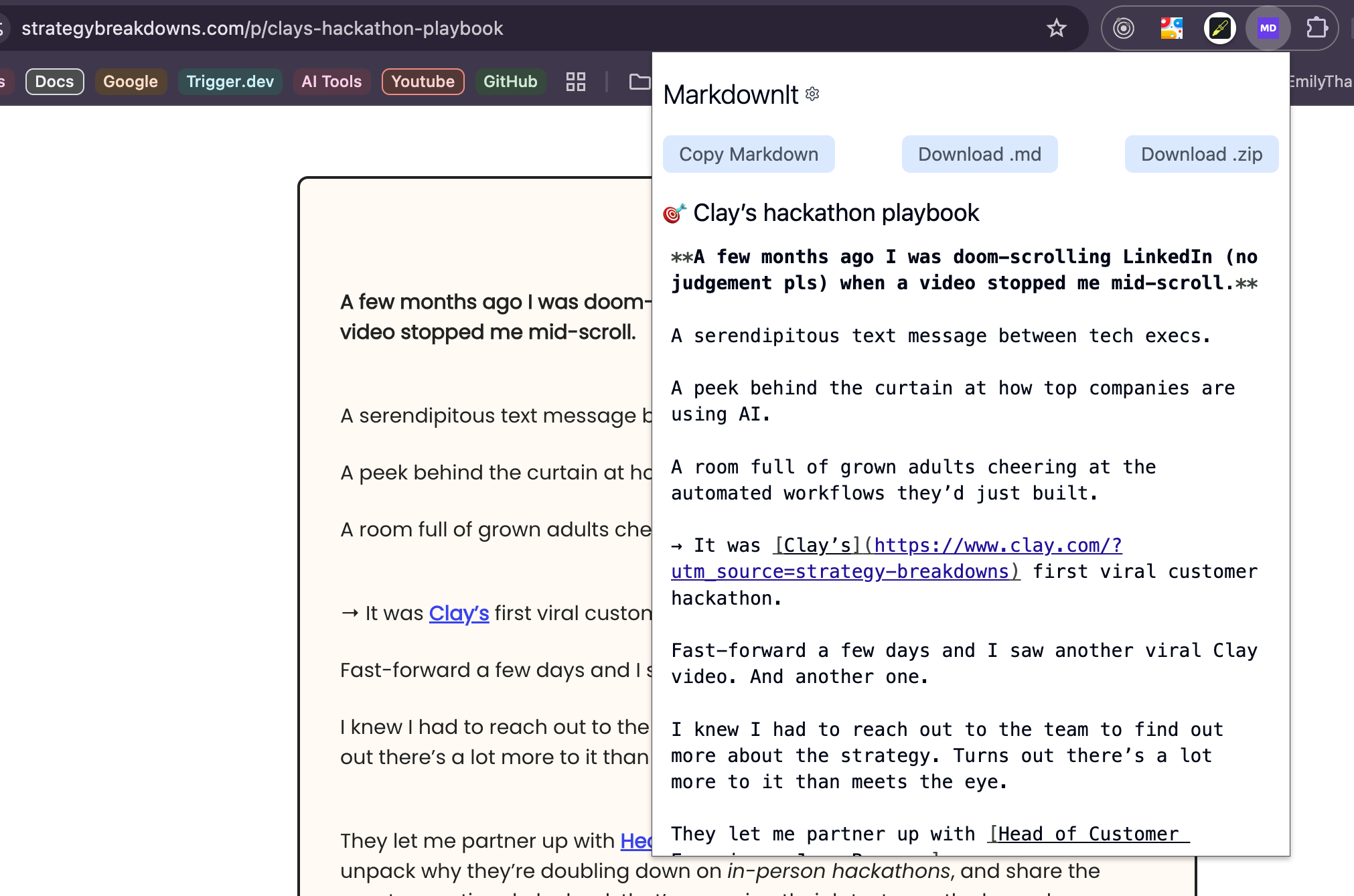 - Copy the generated markdown to your clipboard