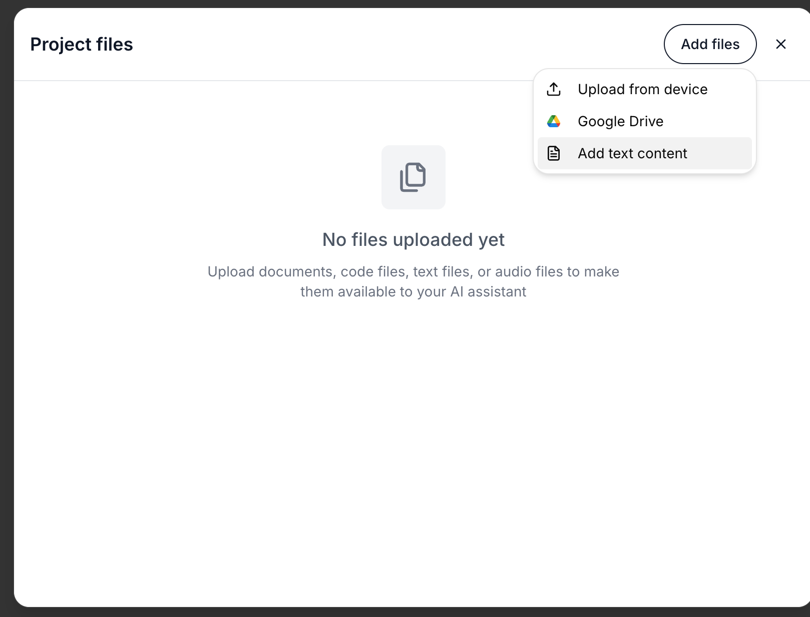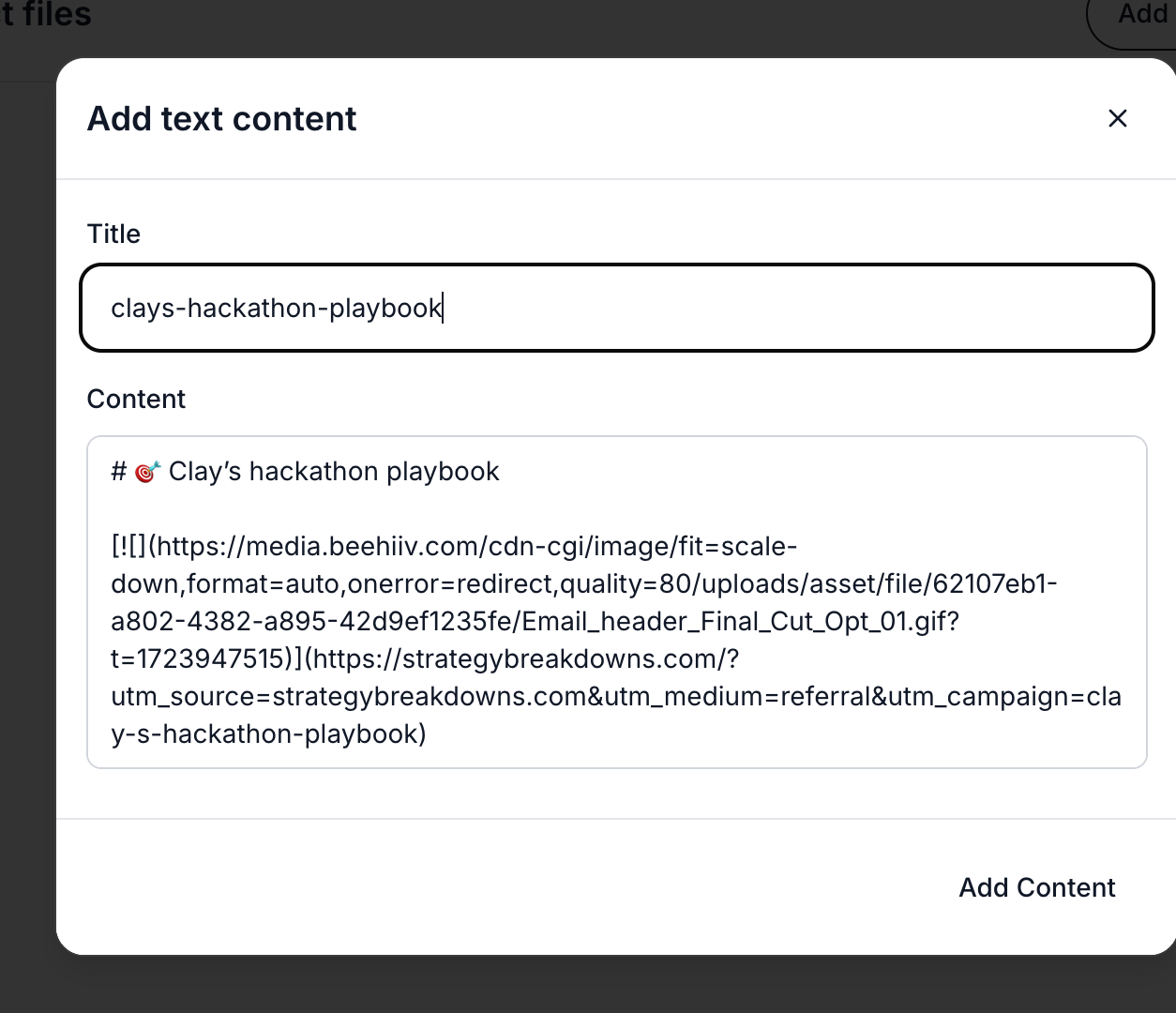 Artifact's file upload system includes a powerful "Paste Text Content" feature that's perfect for markdown integration: