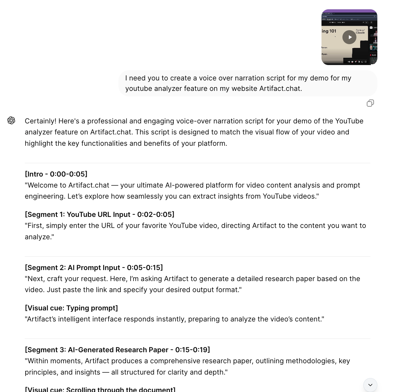 - **Script Quality**: Ensure your Artifact-generated script is well-structured and flows naturally