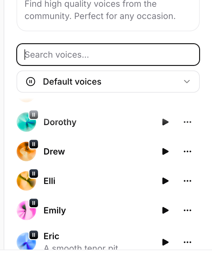 ElevenLabs offers an extensive library of high-quality voices, each with unique characteristics and tonal qualities. You can choose from various accents, age ranges, and speaking styles to match your content's needs perfectly.